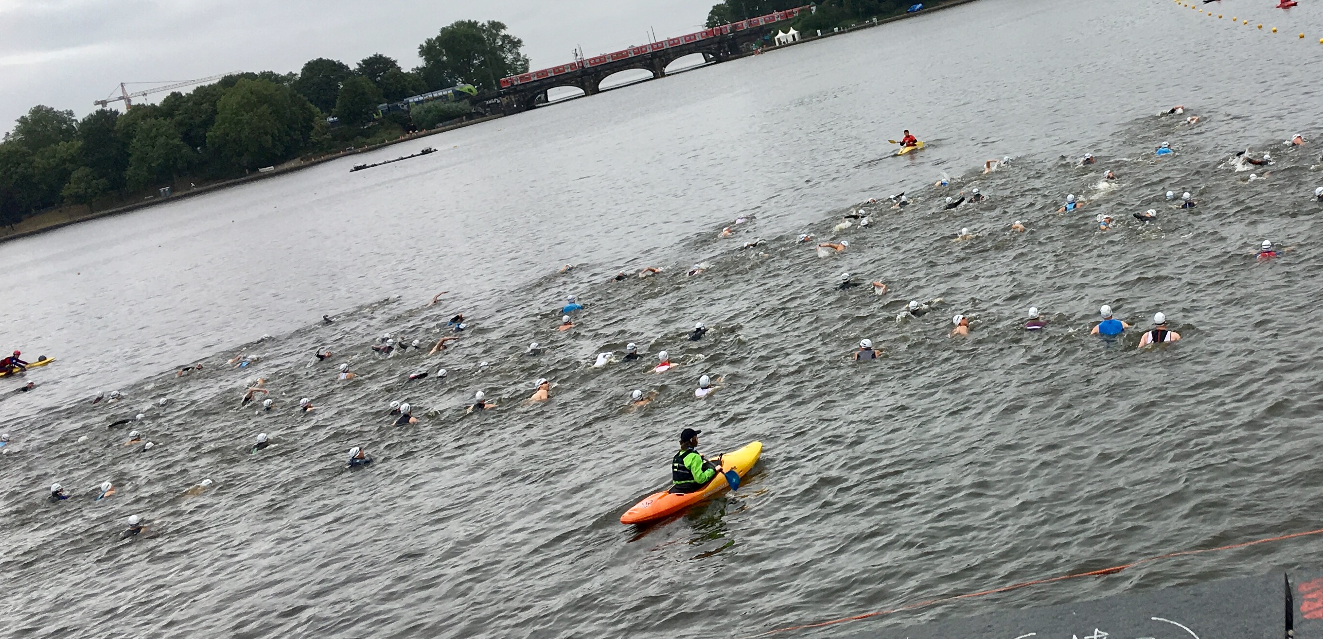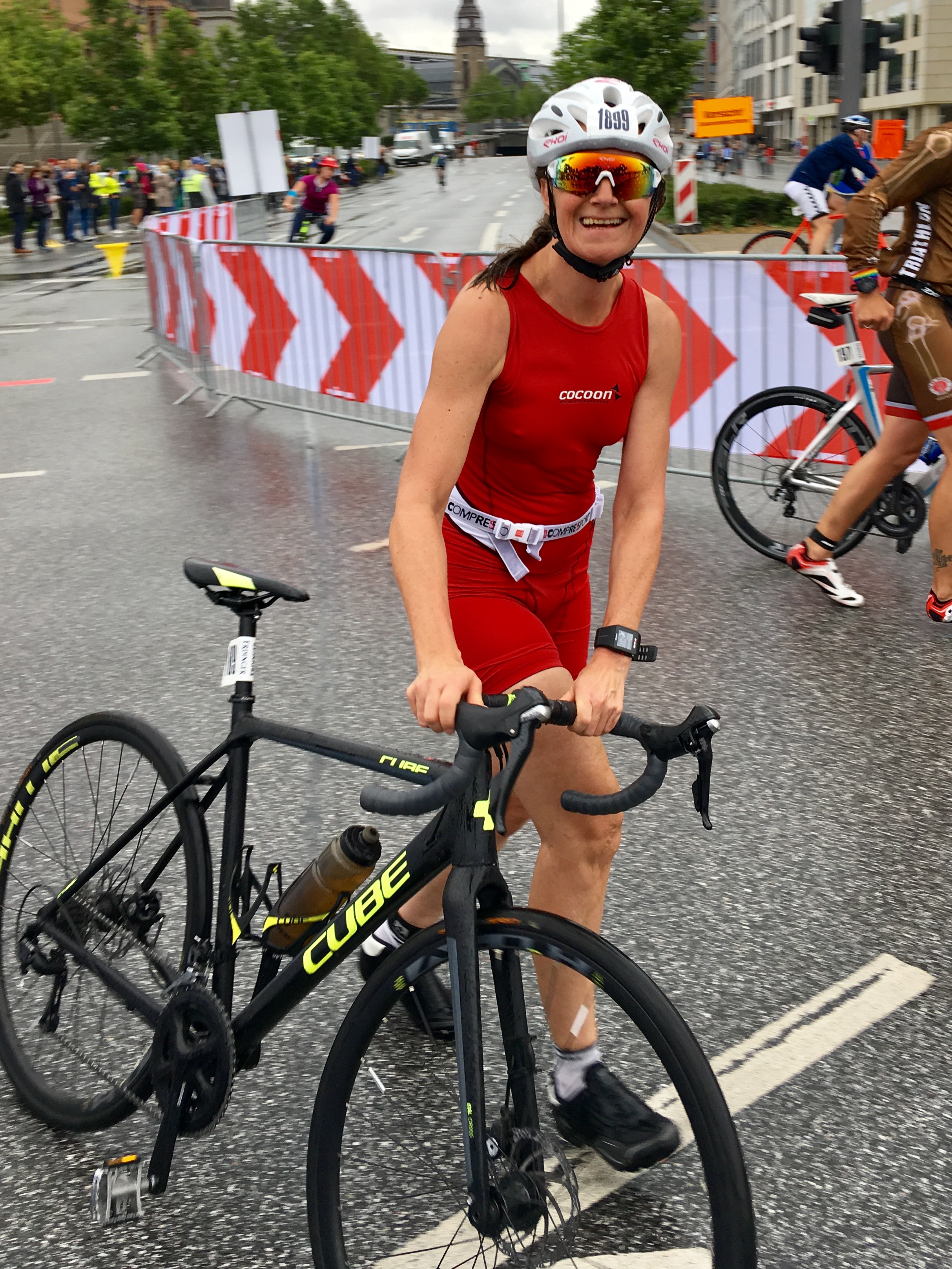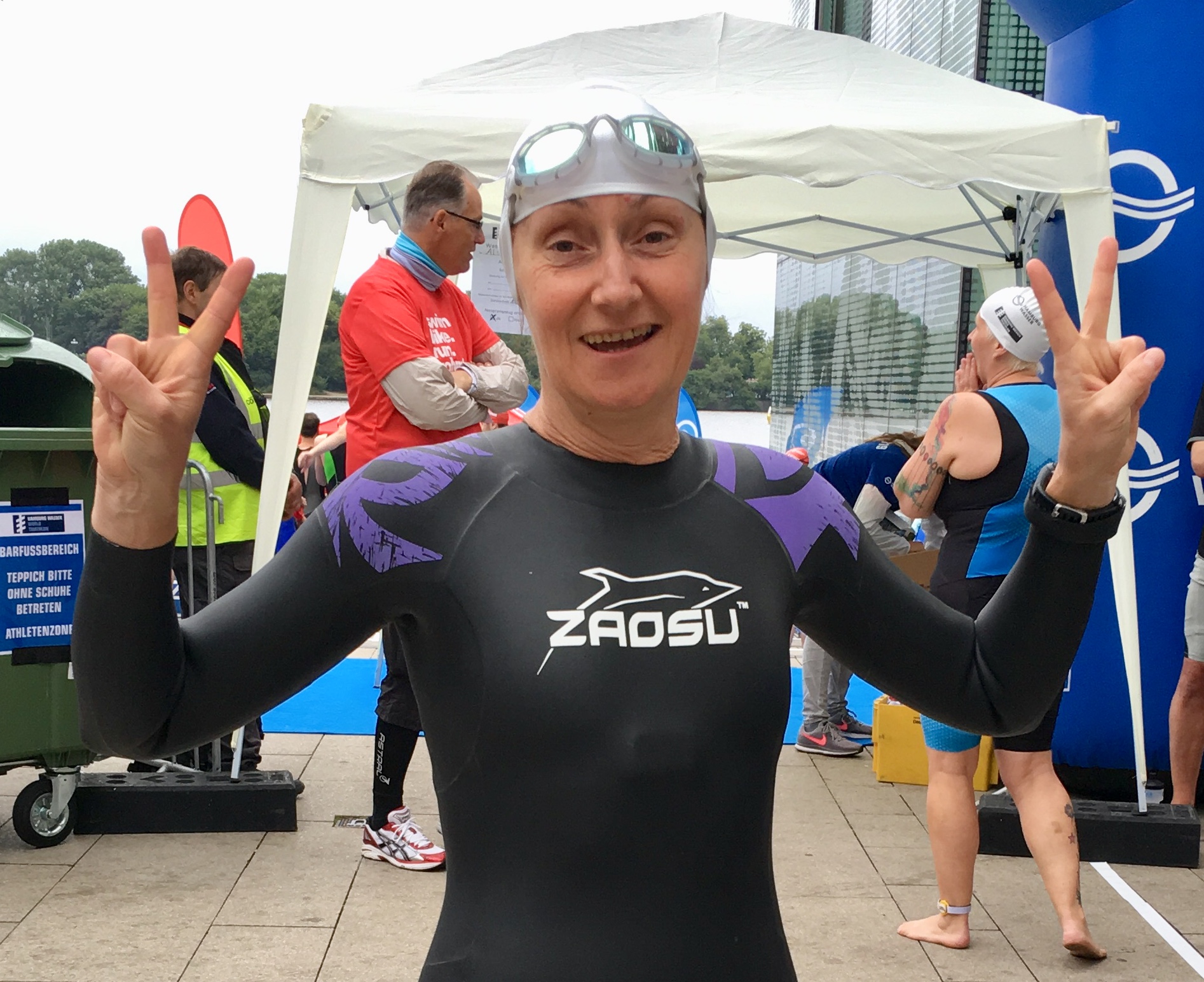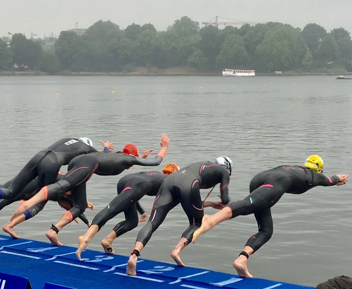 Lufttemperatur 16°C, böiger Wind, immer wieder Regenschauer, Wassertemperatur der Alster 18°C! Tolle Bedingungen für Pommelines Debüt bei einem Triathlon! Macht nichts, sie hats bravourös gemeistert, 35. Platz in ihrer Altersklasse SEN2 von 130 Teilnehmern. Am Rad gar Platz 99 aller rd. 1100 (!!!) teinehmender Damen! Grats! Hier ein paar Fotos: