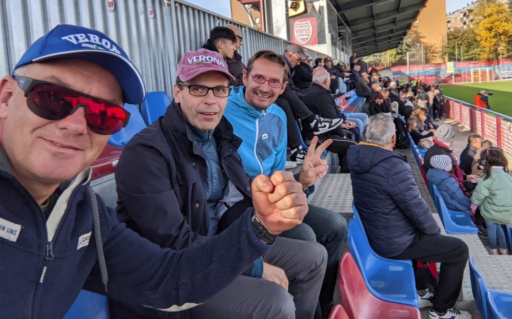 Am Samstag gabs dann zur Abwechslung Fußball: Serie C im Campo Gavagnin-Norcini; VIRTUS Verona gg. Lumezzani! Ein Landesligakick vor ca. 800 Zusehern + 3 TriRunner: Peter, Mike und Hasenpommel! Der Underdog Lumezzani siegte verdient 2:0!