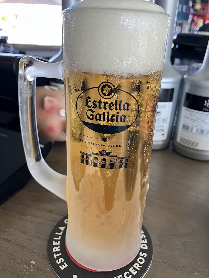Unsere Bungalowanlage war absolut akzeptabel, wenngleich keine Heizung vorhanden war. Da mussten wir uns für die Stunden nach Sonnenuntergang mit einem Heizstrahler behelfen (den konnten wir bei der Rezeption relativ günstig ausleihen). In der Nacht sanken die Temperaturen dann doch auf bis 12°C ab. Eine kleine Ortschaft zum Flanieren war nicht vorhanden, dafür aber eine Bar, die diverse Cocktails, Drinks und Biere feilbot. Wir lernten einen galizischen Vermouth kennen – Petroni, „Sour“ oder „Aperitivo“, aber auch diverse Gin Tonic`s, einheimische Weine, und Biere wie Estrella und San Miguel!